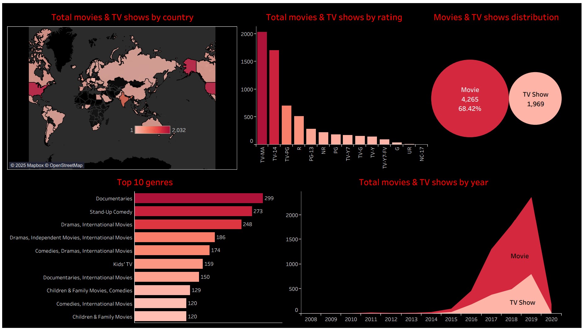 This project analyzes Netflix's movie and TV show catalog, focusing on its global distribution, audience preferences, and growth trends. The findings provide valuable insights for understanding Netflix's content strategy and audience engagement patterns.